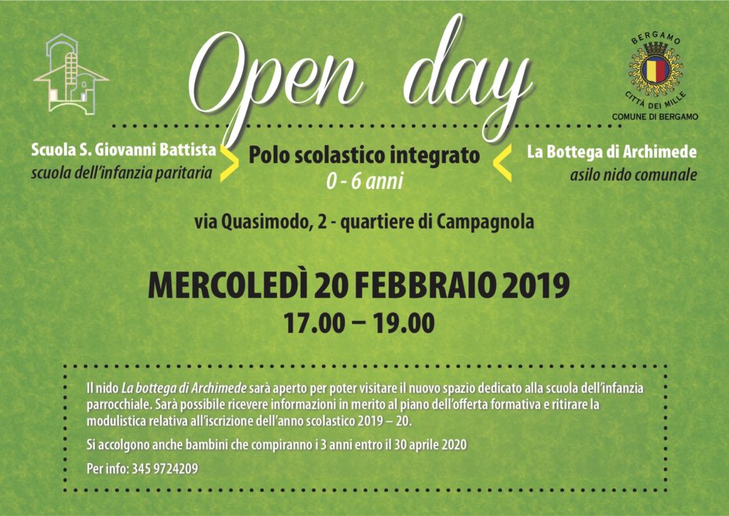 Si comunica a tutti gli interessati che a partire dall’anno scolastico 2019 – 2020 la scuola dell’infanzia S. Giovanni Battista รจ stata definitivamente chiusa.